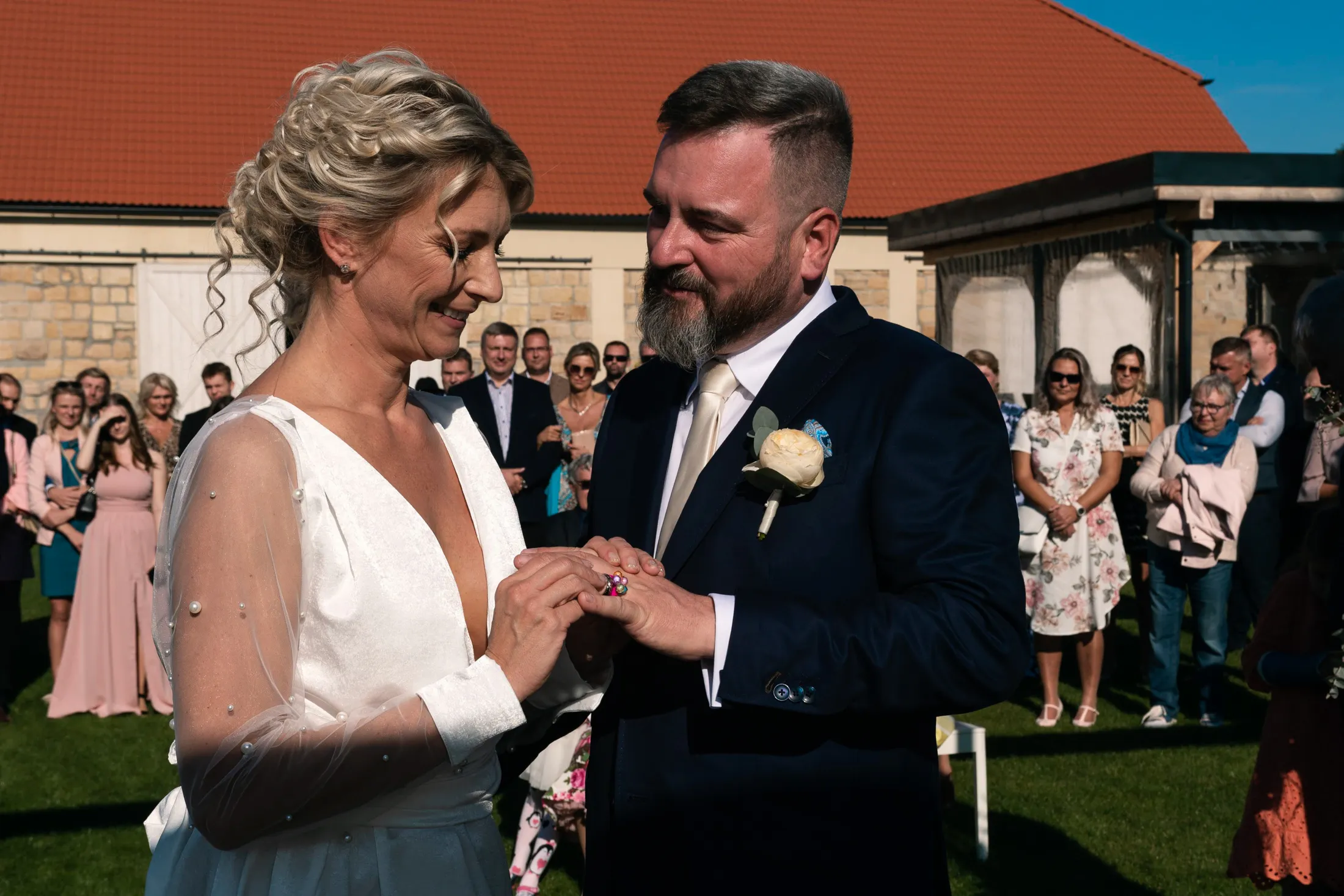 S velkou pokorou děkujeme tam nahoru, všem, co tam nad námi tak trpělivě drží ochrannou ruku. Děkujeme, že se naše cesty spojily. Děkujeme za perfektní počasí pro náš svatební den...